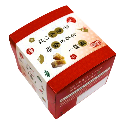 - 年末限定の芋きんつばです。招き猫が『幸福』や『金運』を招いている、縁起の良いデザインに仕立てております。贈答用の4個入り。
