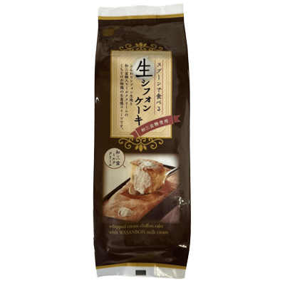 - 和三盆入りクリームのなめらかな舌触りとシフォンケーキが一体感を生み出した、スプーンで食べる生食感スイーツ。
